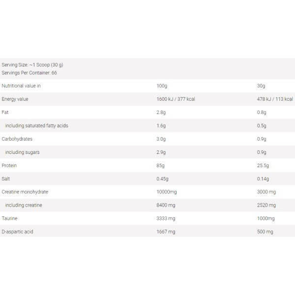 · 25,5 г протеїнів (профіль з 18 амінокислот, у тому числі, ВСАА);