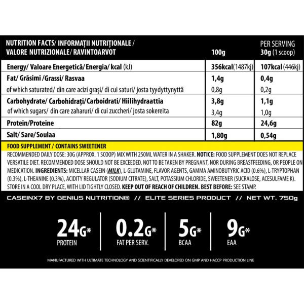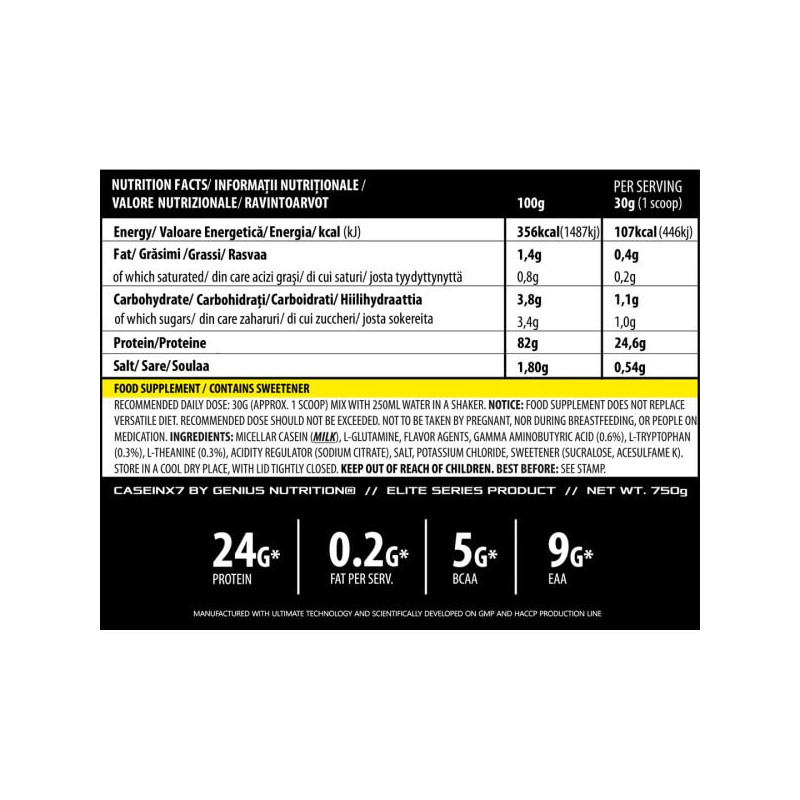 У порції сухого порошку Casein-X7 від Genius Nutrition масою 30 г міститься: