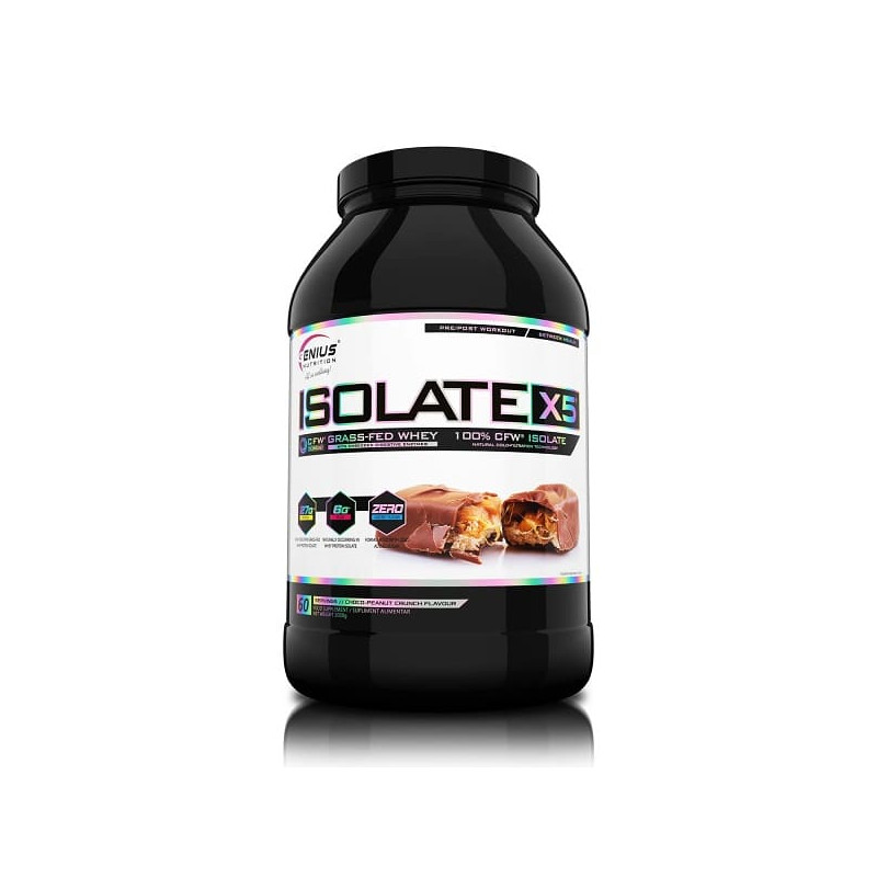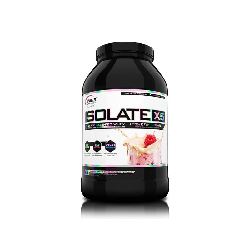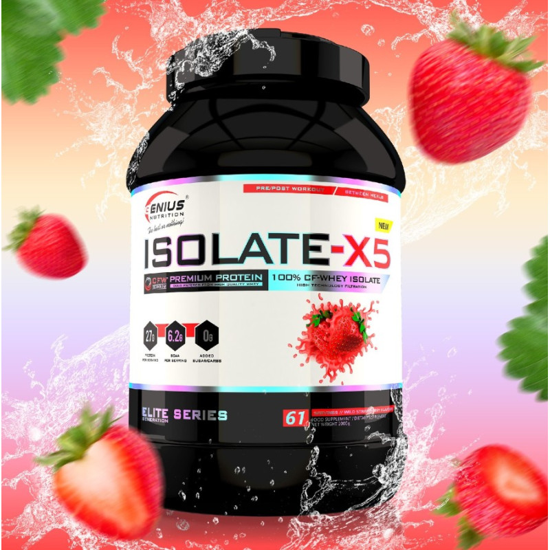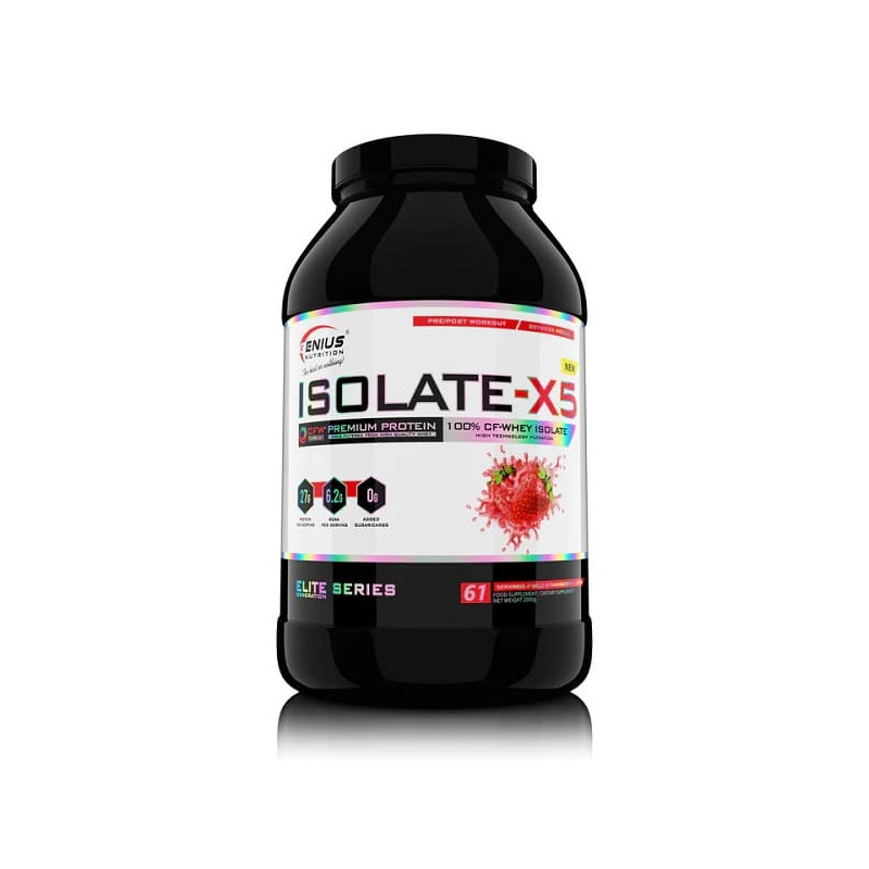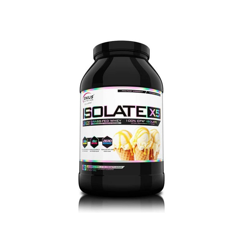 Isolate-X5 від популярного європейського бренду Genius Nutrition – якісний ізолят сироваткового білка з низьким вмістом цукру, жиру та лактози. Він отриманий з перевіреної натуральної сировини, очищеної від домішок із застосуванням технології холодної ультрафільтрації, має чудову засвоюваність та профіль з 18 амінокислот.