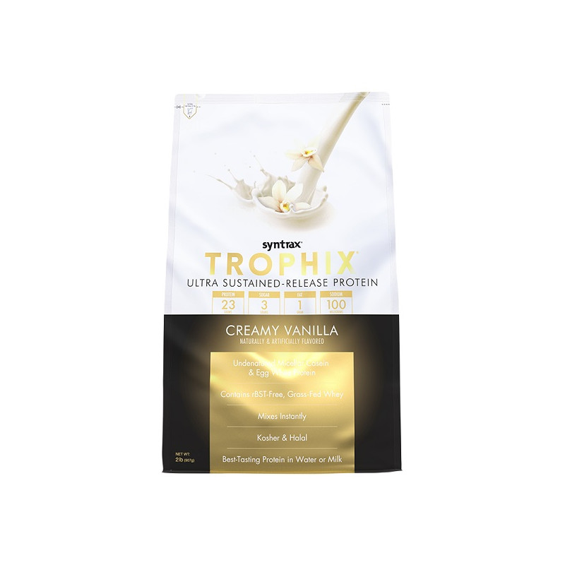 Протеїновий мікс Trophix від Syntrax-це унікальна комбінація чотирьох різних типів білка, розроблена спеціально для максимально якісної підживлення мязів білками і амінокислотами.
