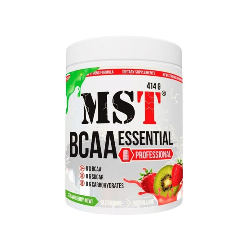 BCAA Essential Professional Fermented от производителя из Германии MST – уникальный комплекс незаменимых аминокислот БЦАА в классической пропорции 2:1:1, дополненный глютамином и цитруллином, а также обогащенный витаминами и минералами. Такой состав значительно расширяет спектр позитивного воздействия биоактивной добавки на организм по сравнению с обычными БЦАА-комплексами.