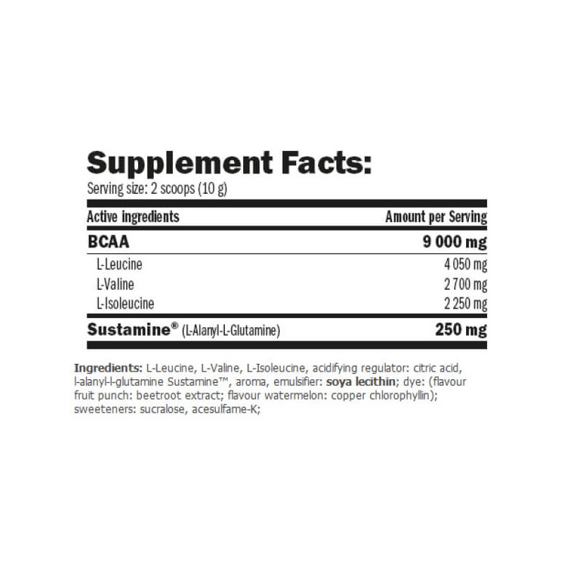 В порции Synchro BCAA Plus Sustamine от Amix массой в 10 г содержится: