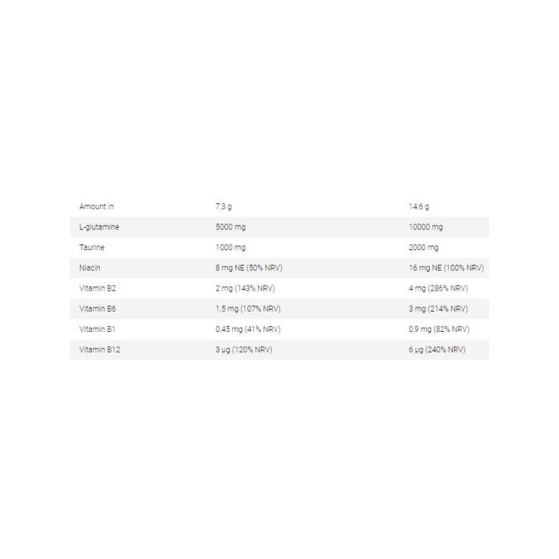 Устранить его поможет натуральная биодобавка, в составе которой глютамин органично дополнен и усилен таурином и витаминами группы В. Удобная для приготовления коктейлей порошковая форма и несколько вариантов ярких природных вкусов сделают употребление продукта комфортным и приятным.