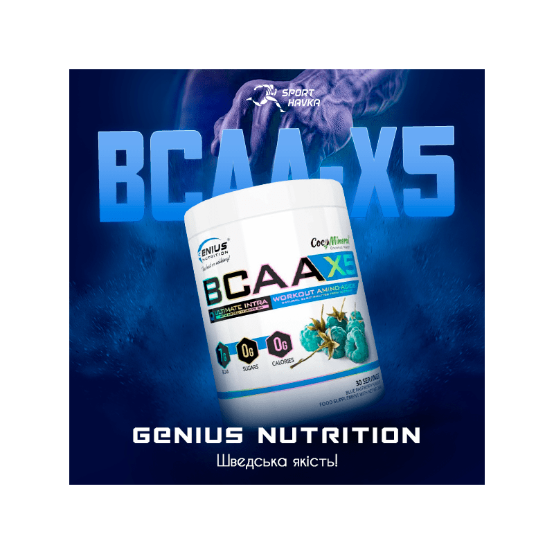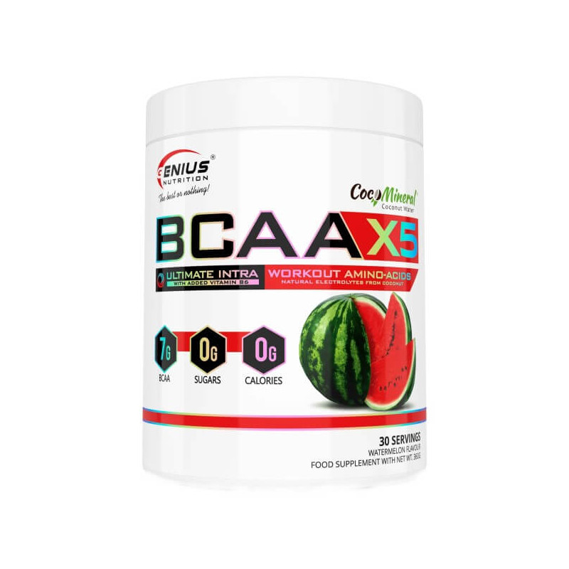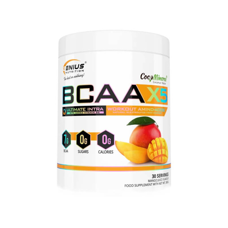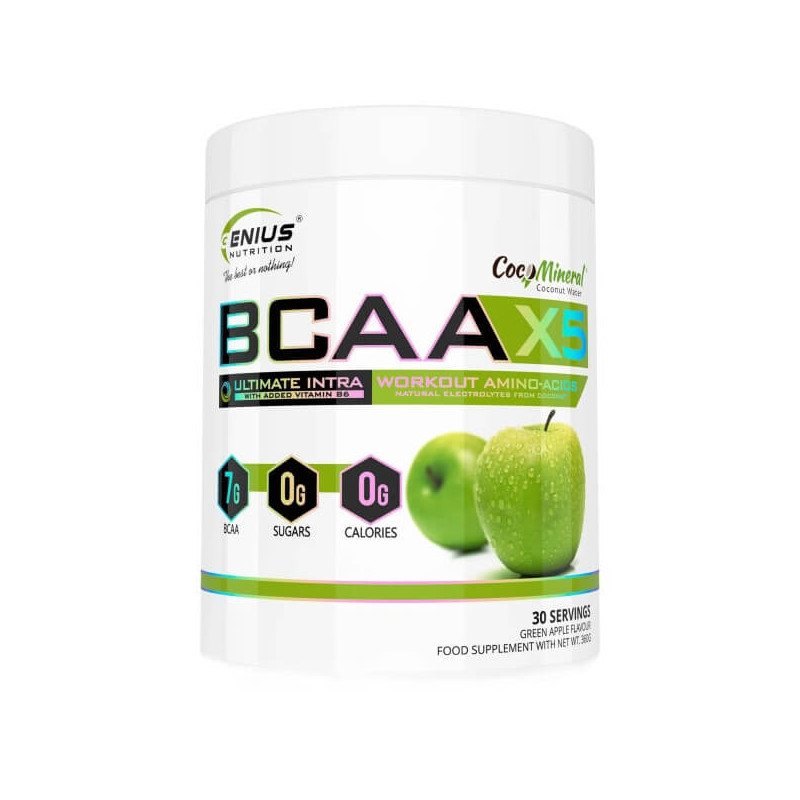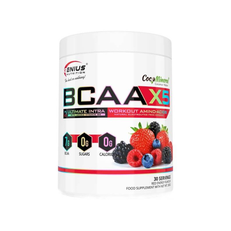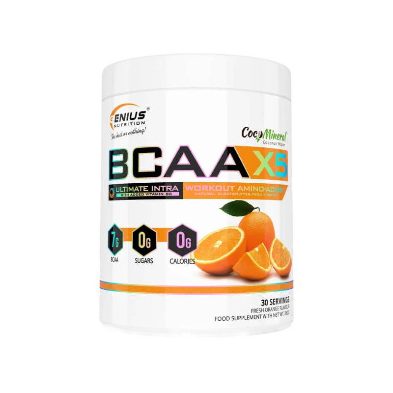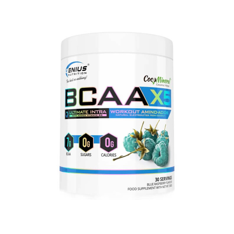 BCAA-X5 от известного европейского бренда Genius Nutrition – идеально составленный комплекс незаменимых аминокислот с разветвленной боковой цепью ВСАА в пропорции 2:1:1, усиленный глютамином, цитруллином, минеральной электролитной кокосовой водой и витамином В6. Аминокислоты в этой добавке представлены в подготовленной ферментированной форме, обеспечивающей высокую биодоступность. Порошковая консистенция позволяет быстро готовить полезные напитки. А широкий ассортимент вкусовых вариаций дает возможность делать эти напитки вкусными и разнообразными.