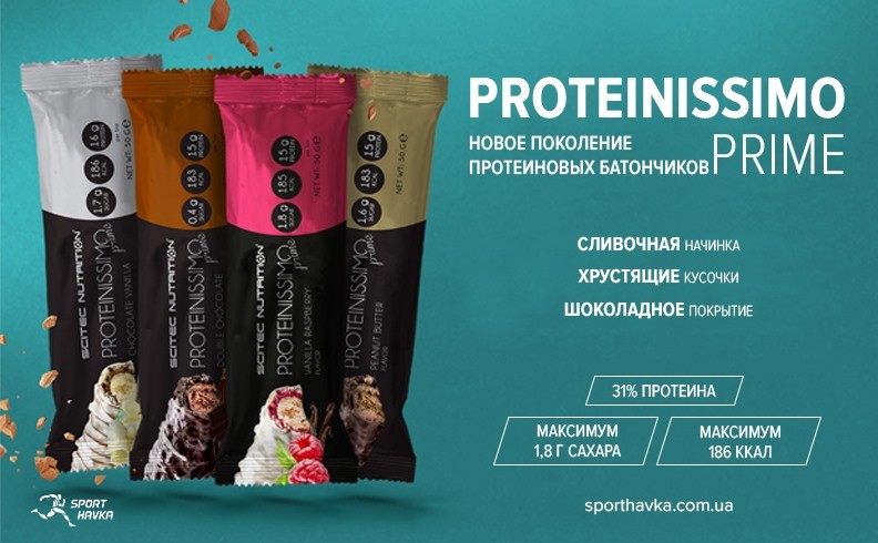 Заряжайтесь энергией и хорошим настроением с полезным батончиком Proteinissimo Prime от Scitec Nutrition.