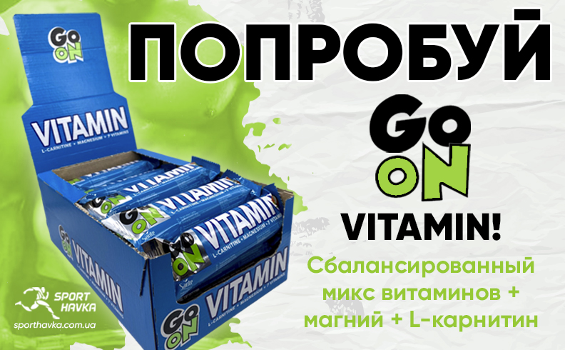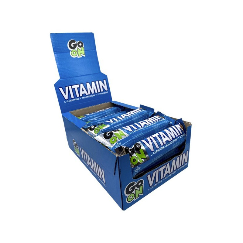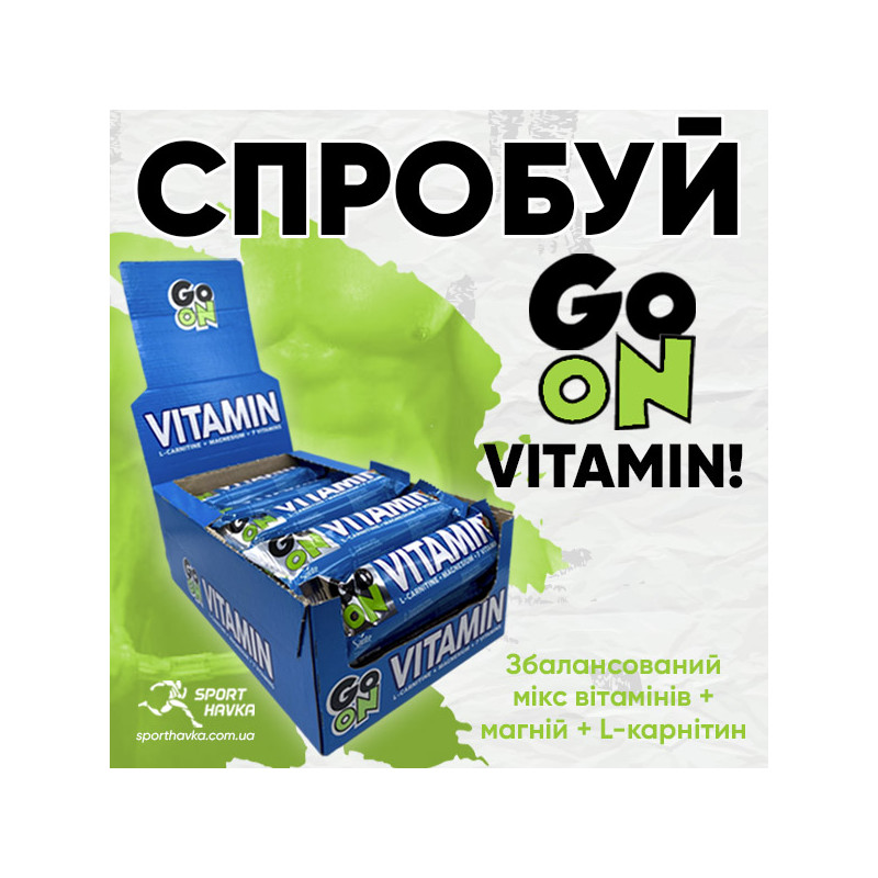 GO ON Vitamin – витаминизированный энергетический батончик от польского производителя GO ON Nutrition. В нем содержится ударная доза качественных углеводов и сбалансированный микс витаминов, а также магний и L-карнитин, позволяющие быстро и с удовольствием восполнять дефицит полезных микроэлементов в организме.