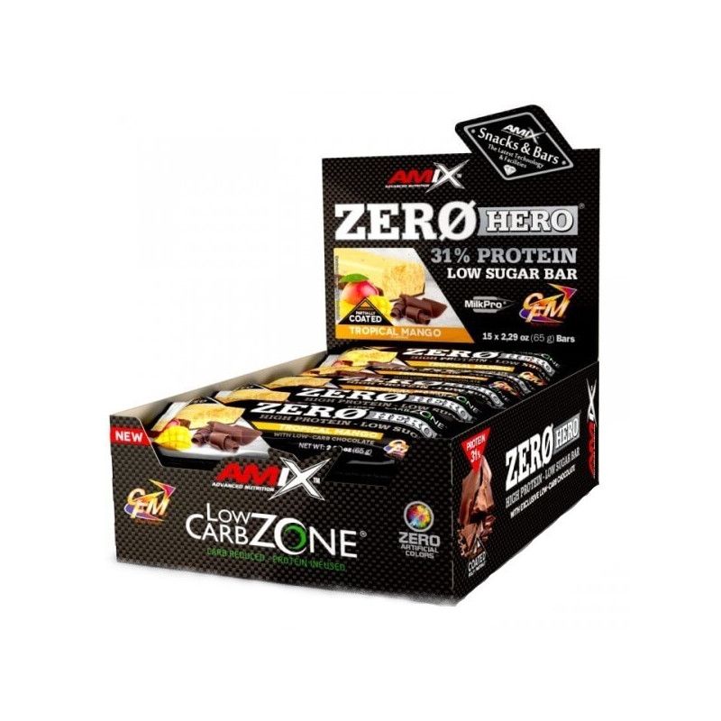 В одном баре Low-Carb Zerohero Protein Bar от Amix массой в 65 г содержится: