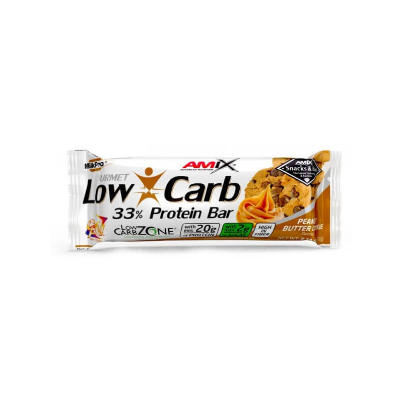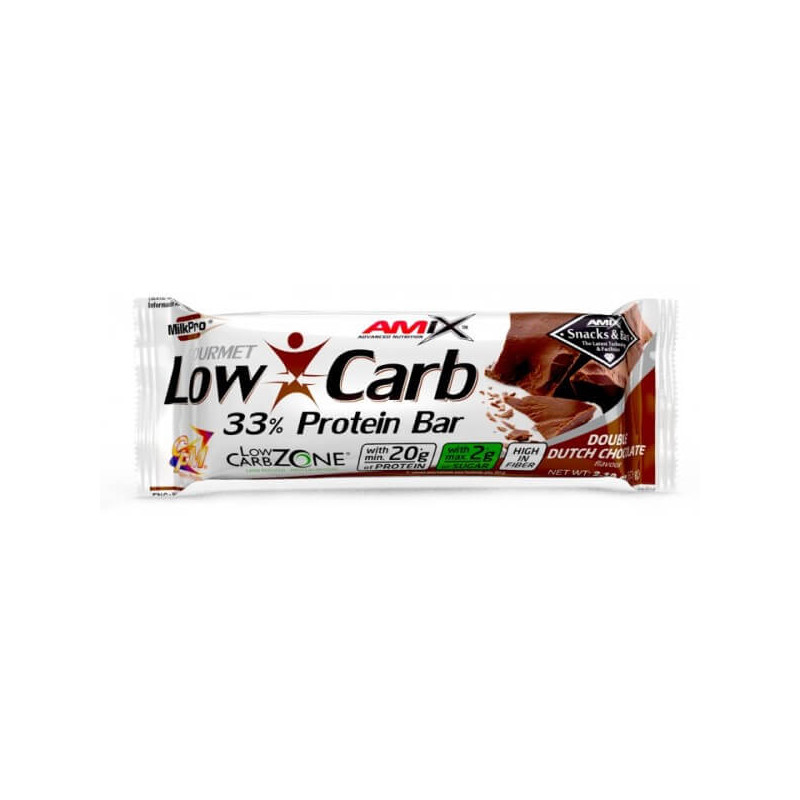Low-Carb 33% Protein Bar от одного из лучших европейских брендов спортивного питания Amix – батончик с высоким процентным содержанием протеинов и минимальным количеством простых углеводов. В нем присутствует уникальная матрица MilkPro Protein Blend, состоящая из изолятов и концентратов белков из цельного молока и молочной сыворотки. Также в состав продукта входят очищенные пищевые волокна, полезные жиры и мальтитол в виде сиропа с разными вкусами.