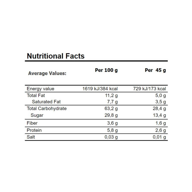 Помимо углеводов, в составе присутствуют полезные жиры и натуральные молочные протеины с широким аминокислотным профилем, включающим ВСАА. Батончик имеет приятную текстуру и представлен в трех вкусовых вариантах – тропического манго, шоколадно-банановых чипсов и орехового крема с какао.