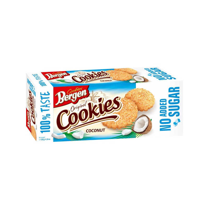 Кокосовое печенье (без сахара) Bergen – это хрустящий перекус с насыщенным ароматом кокоса для ежедневного рациона.