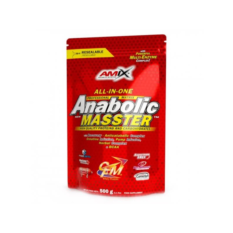 Anabolic Masster от производителя из Великобритании Amix – комплексная протеиновая биодобавка с уникальным составом, разработанным экспертами компании. В нее входят сывороточный протеин, усиленный аминокислотами из говяжьего сырья, два типа сывороточных изолятов, полученных с помощью метода микрофильтрации, несколько видов углеводов, витамины, минералы и другие компоненты, оформленные в виде уникальных запатентованных формул.