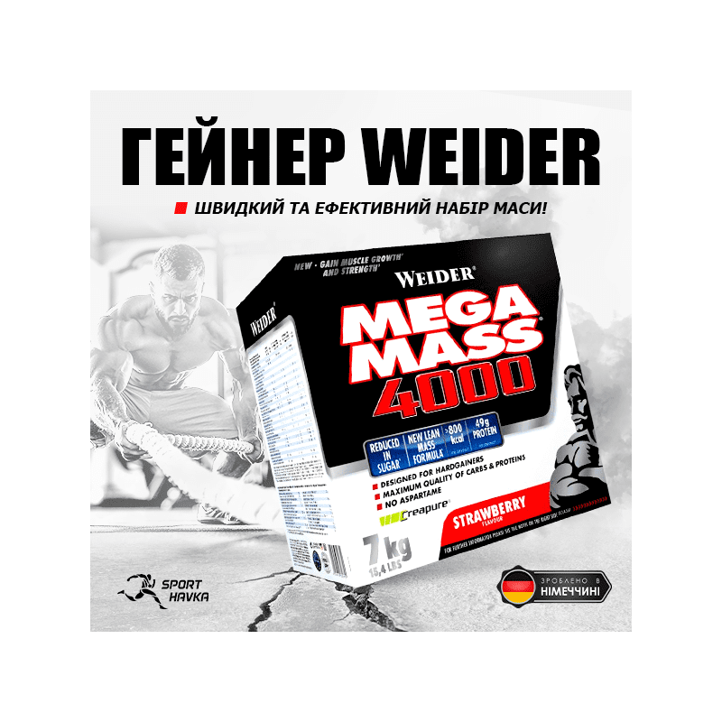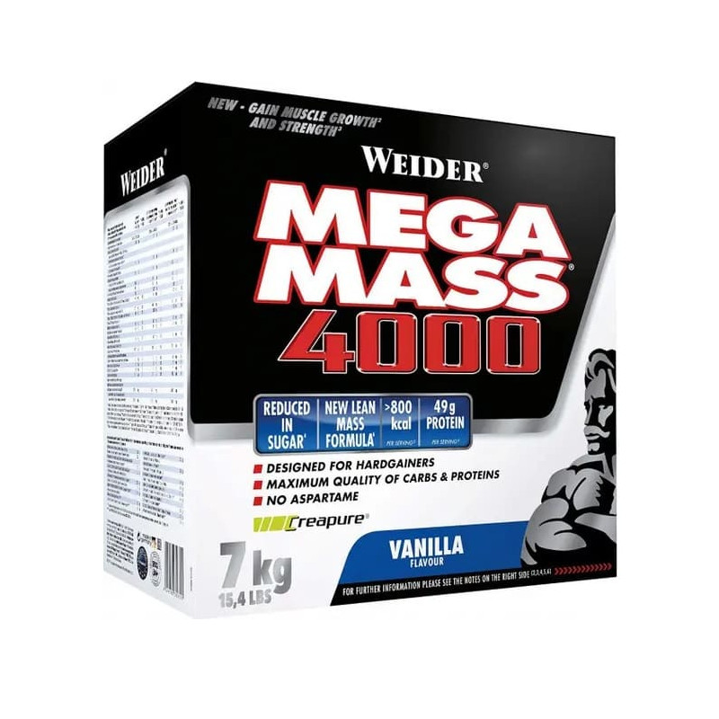 Если желаете набрать вес и при этом достаточно быстро, тогда стоит обратить внимание на биодобавки с высоким содержанием углеводов и белков. Одной из таких является гейнер нового поколения MEGA MASS 4000 от Weider.