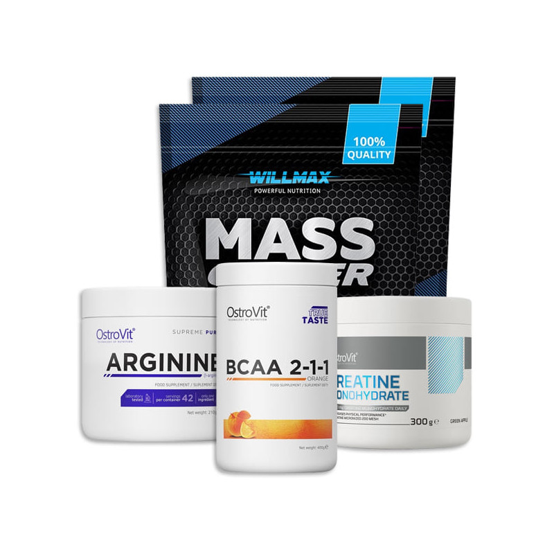 Вашему вниманию представлен готовый комплекс для быстрого набора массы и роста мышц. Основная составляющая комплекса - Гейнер Willmax 4 кг , который необходим для быстрого возврата энергетических ресурсов организма и увеличения мускульной массы тела.