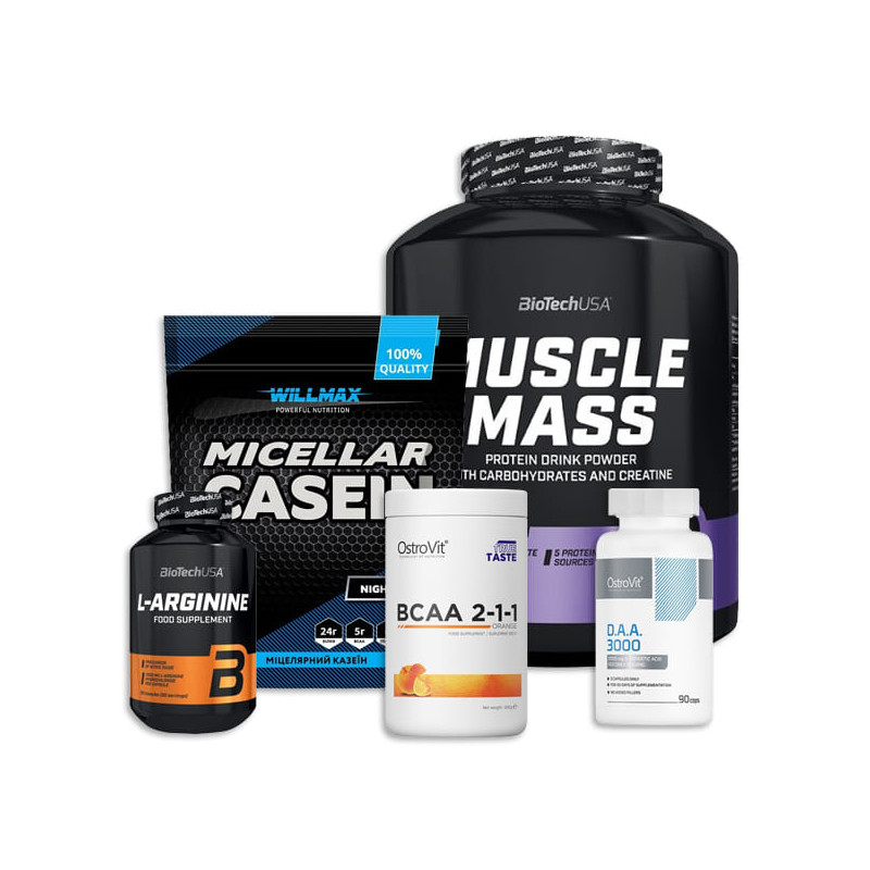 Ігор, Гейнер POWER PRO 4кг - 100 порцій, Micellar Casein OstroVit (700 грамів) - 23 порції, Креатин OstroVit (300 грамів) - 60 порцій, ВСАА Flesh Progress Nutrition (300 грамів) - 33 порції, L-Arginine Progress Nutrition (60 капсул) - 60 порцій, DAA 1000 Ostrovit (120 капсул) - 40 порцій.
