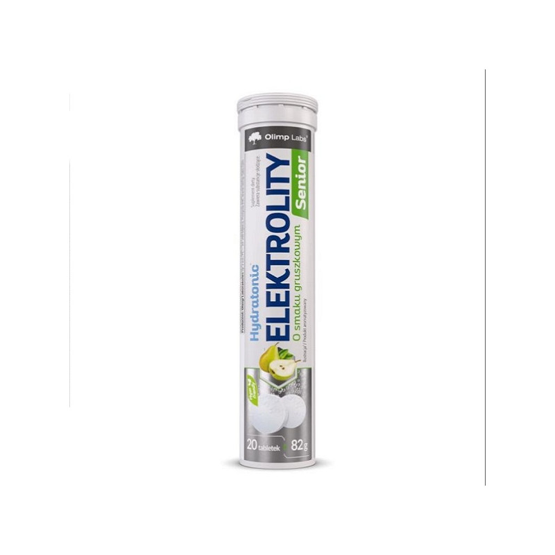 Hydratonic Elektrolity Senior Olimp – шипучие таблетки с электролитами. Предназначены для поддержания водного баланса организма. Содержат важные минералы для ежедневной поддержки. Помогают поддерживать функцию мускулов. Способствуют нормальной работе нервной системы. Быстро растворяются в воде. Упаковка содержит 20 таблеток.