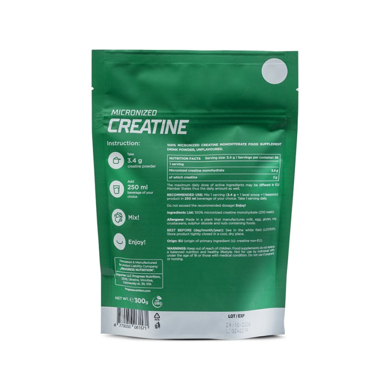 Одна порция добавки (3,4 г) содержит 3 г микронизованного креатина.