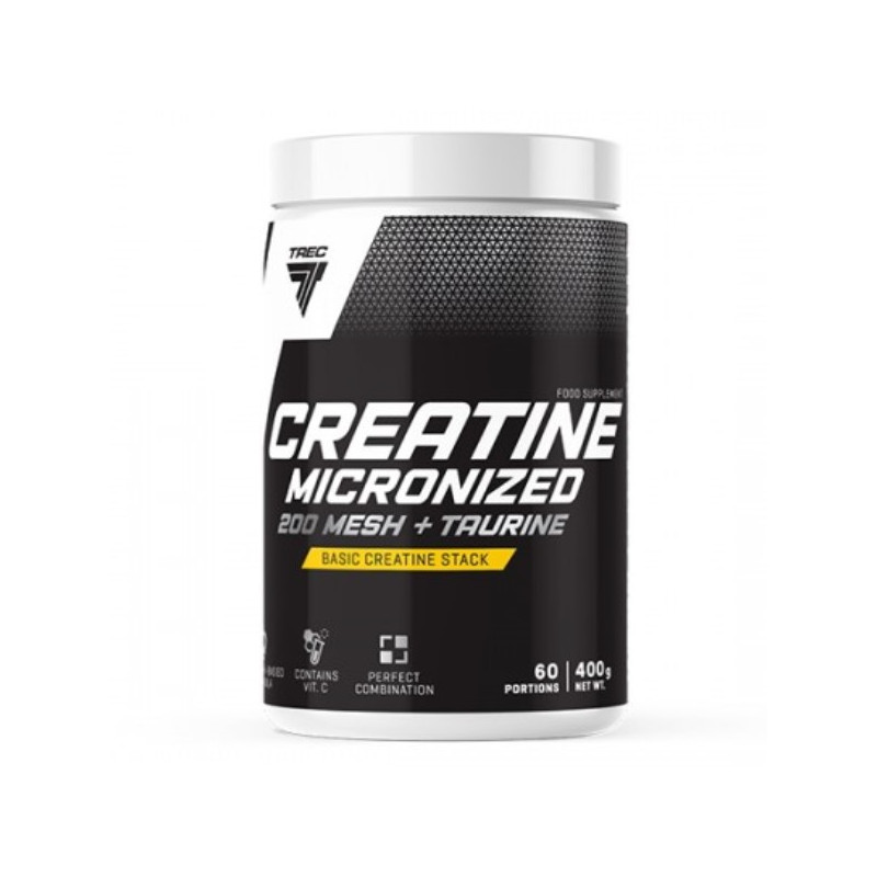 Creatine Micronized 200 Mesh + Taurine от польского производителя Trec Nutrition – биоактивная добавка, в которой основной компонент – микронизированный креатин – дополнительно обогащен таурином и витамином С.