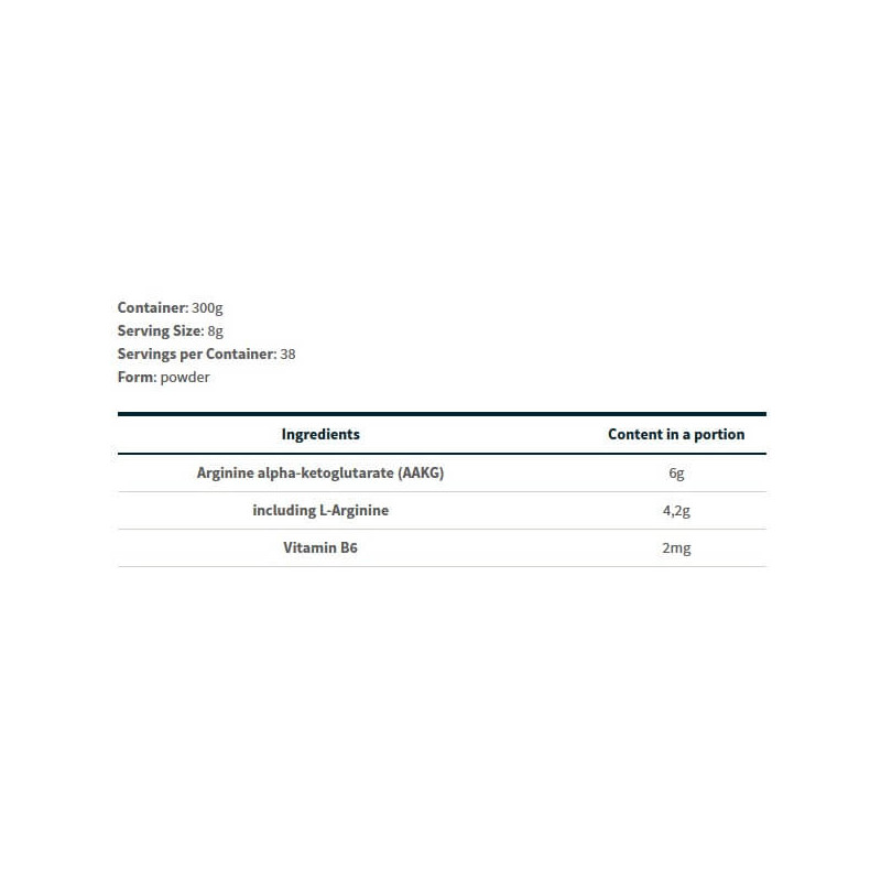 В порции сухого порошка A-AKG от Fitness Authority массой в 8 г содержится: