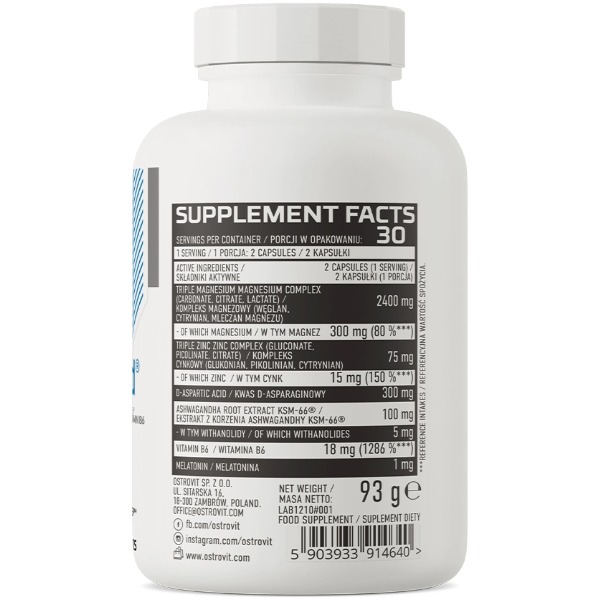ZMAdvanced OstroVit - это современный комплекс, разработанный для поддержания общего здоровья и витальности. Этот продукт предлагает сбалансированное сочетание ключевых ингредиентов, специально отобранных для оптимальной функции организма. В каждой капсуле содержится смесь природных компонентов, включая магний, цинк, D-аспарагиновую кислоту, экстракт корня ашвагандхи, витамин B6 и мелатонин. Этот продукт предназначен для тех, кто стремится поддерживать здоровый образ жизни и обеспечить своему организму все необходимые питательные вещества.