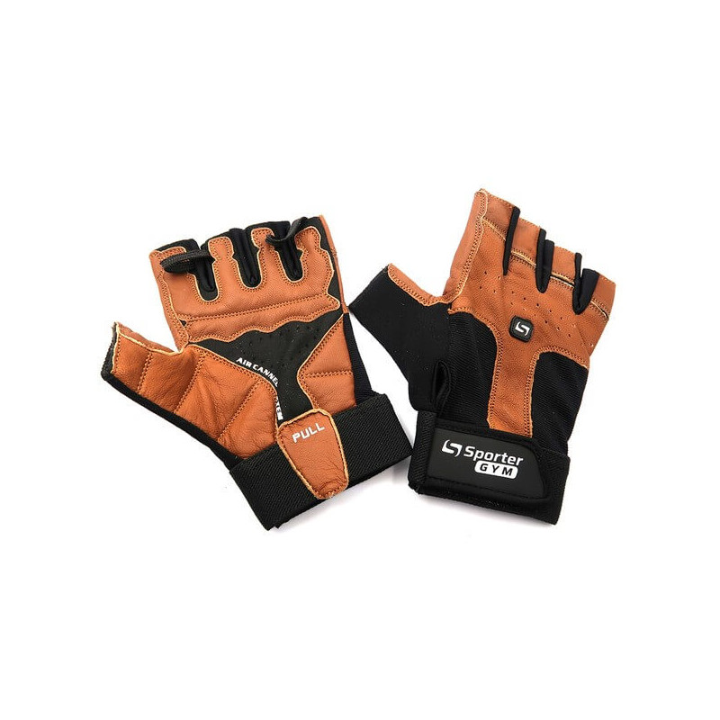 Достойно дополнят и украсят вашу спортивную экипировку стильные, элегантные и практичные перчатки с открытыми пальцами Classic от популярного бренда Sporter. Они изготовлены из высококачественной мягкой и эластичной кожи двух цветов – глубокого черного и насыщенного терракотового, к тому же, в нескольких местах украшены надписями и изображениями белого цвета. Такой дизайнерский ход позволяет им стать изысканным акцентом вашего спортивного имиджа.