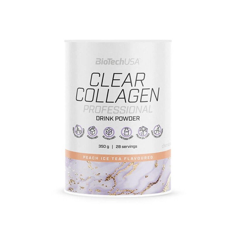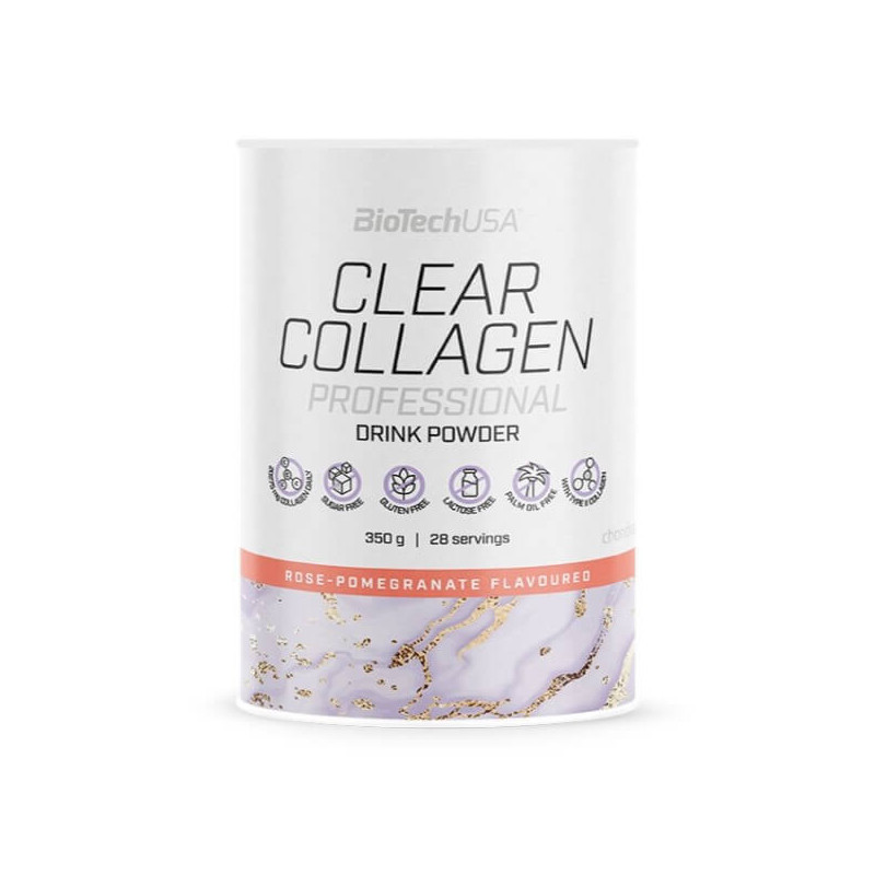 Clear Collagen Professional – натуральная сбалансированная биодобавка от популярного американского бренда BioTechUSA. Помимо высокоочищенного природного коллагена, она содержит комплекс аминокислот, гиалуроновую кислоту, витамины и минералы. Принимая данный продукт по инструкции, вы сможете ежедневно получать до 20 г качественного эффективного коллагена второго типа из гидролизованного хрящевого порошка в виде уникальной запатентованной формулы ChondrActiv. А порошковая форма биодобавки позволит быстро готовить полезные коктейли с приятным ненавязчивым вкусом розы с гранатом либо персикового чая со льдом.