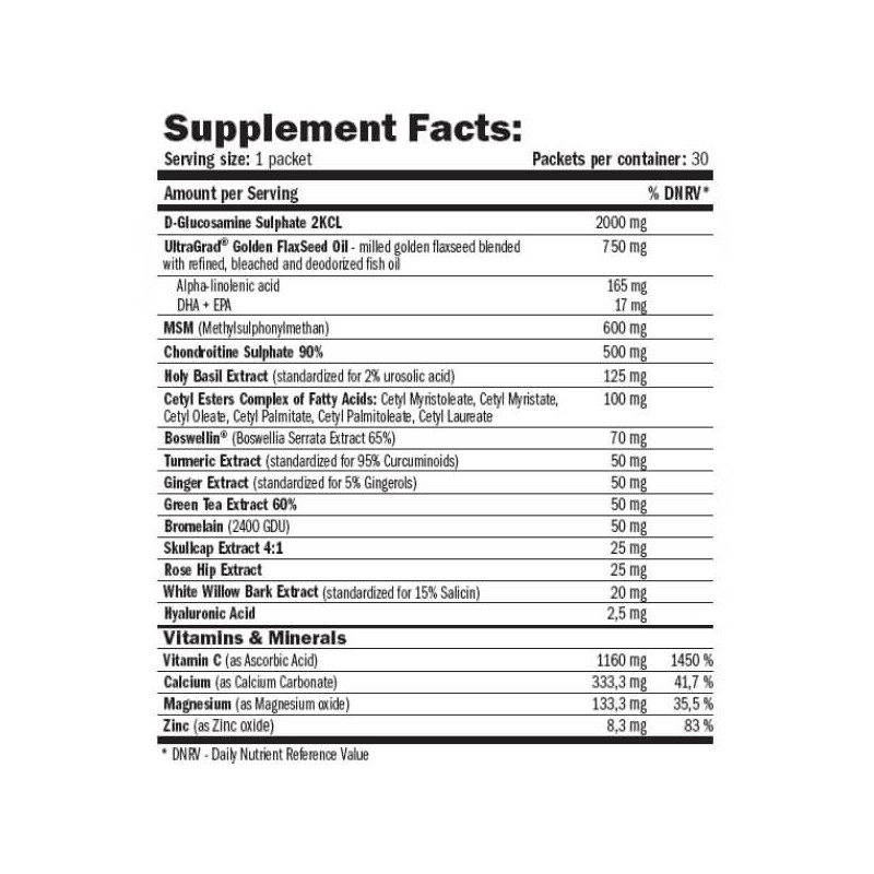 В одной порционном пакете OptiPack Osteo Flex от Amix содержится: