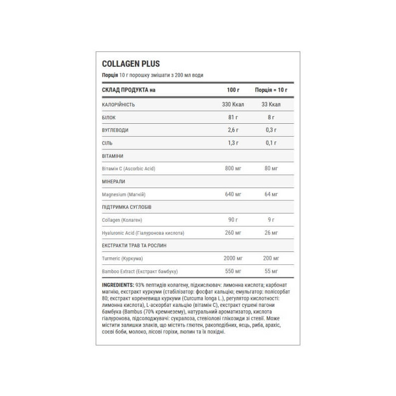В порции порошка Collagen Plus от Weider массой в 10 г содержится: