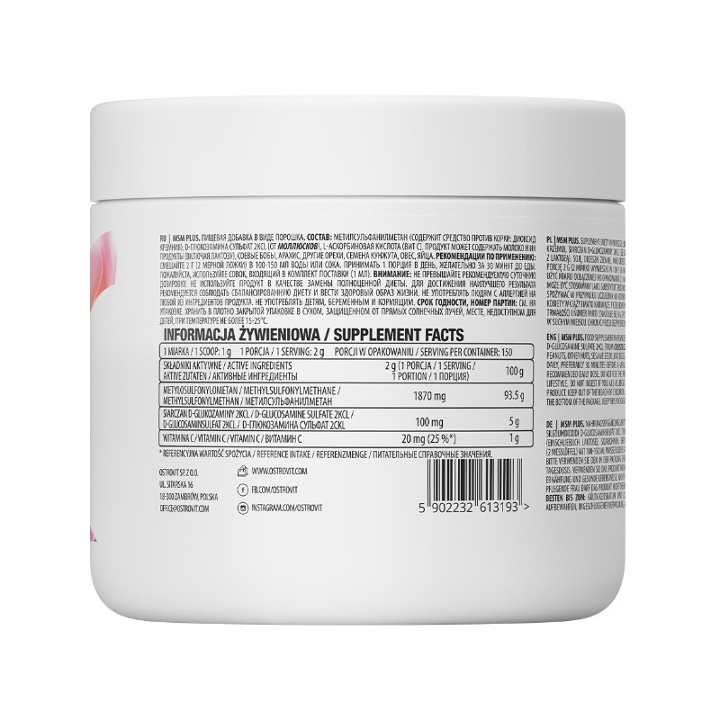 Натуральные ингредиенты без лишних добавок: "МСМ Plus OstroVit" создан с использованием натуральных компонентов, гарантируя безопасность и эффективность использования без риска нежелательных эффектов.