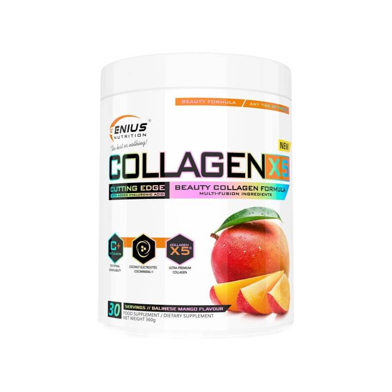 Collagen-X5 powder – уникальная биодобавка с мощным эффектом, разработанная шведским брендом Genius Nutrition. В изготовлении продукта используется исключительно натуральное животное, растительное и минеральное сырье, исключающее вероятность негативных побочных реакций, привыкания и синдрома отмены.