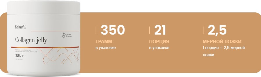 С возрастом уровень коллагена в организме снижается в результате естественных процессов старения, и поэтому рекомендуется снабжать организм коллагеном и извне - коллаген можно найти, например, в костях или сухожилиях животных. Интересным, но необычным источником вещества также является OstroVit Collagen Jelly. Это биологически активная добавка в виде фруктового десерта, которая обеспечивает организм гидролизованными пептидами рыбьего коллагена. По своей структуре соединение напоминает человеческий коллаген, благодаря чему вещество очень хорошо усваивается в организме человека. К тому же морской коллаген I типа выделяется более низким молекулярным весом, что положительно влияет на его усвоение. OstroVit Collagen Jelly это продукт, который создан для потребителей, жаждущих инноваций, но не могущих отказать себе в сладком, фруктовом удовольствии.