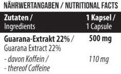 Основным ингредиентом пищевой добавки является порошок семян гуараны – растения, в составе которого присутствует гуаранин, являющийся практически полным аналогом кофеина. Кроме того, в этом растении есть сапонины, дубильные вещества, смолы, пектин, теобромин, минералы, витамины А, группы В, Е и РР, а также другие полезные фитокомпоненты.