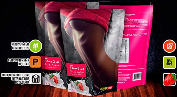 Сбалансированный состав Femine позволяет сформировать эффектный рельеф. Главный компонент препарата — сывороточный белок европейского производства. Кроме того, в его состав входят такие дополнительные вещества как бромелайн, мучница, зеленый кофе, худии. Эти добавки позволяют эффективно контролировать аппетит, что способствует более быстрому снижению веса. Благодаря аминокислотам, которые также содержать в протеине в больших количествах, рост мышечной ткани ускоряется. Каждый элемент играет важную роль и усиливает действие других. Так, мучница ускоряет обмен веществ и обладает легким мочегонным действием. Бромелайн улучшает пищеварение. Зеленый кофе активирует процесс сжигания жира. Худия снижает чувство голода. Уникальные растительные добавки усиливают эффект сжигания жира, наполняют организм энергией и способствуют наращиванию мышечной массы.