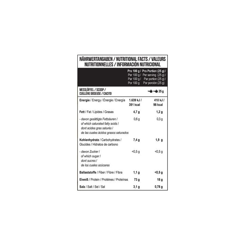 В порции спортивной добавки весом в 25 г содержится: