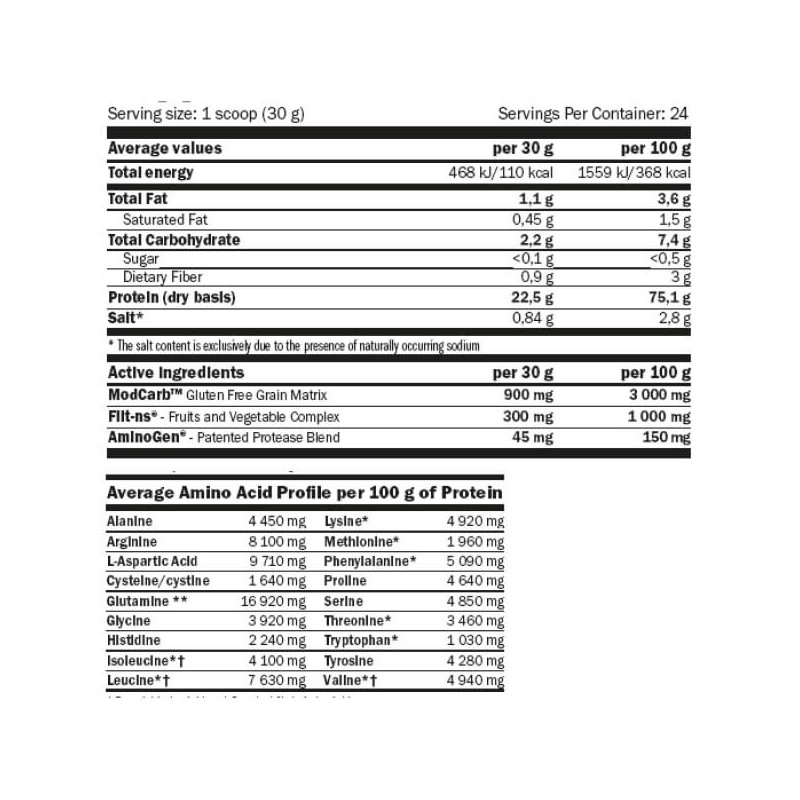 Доля растительного белка в этой пищевой добавке достигает 75%, благодаря чему Greenday Vege Fiit Protein от Amix можно позиционировать как один из наиболее эффективных протеиновых миксов для вегетарианцев и веганов. Порошковая форма со вкусом двойного шоколада гарантирует не только пользу, но и удовольствие от приема.