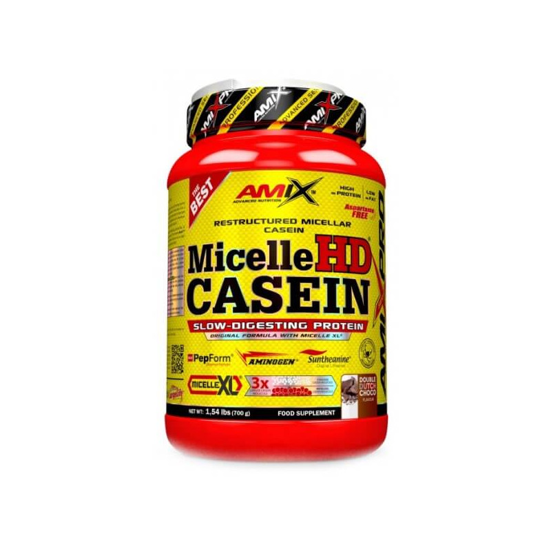 Micelle HD Casein – уникальная биодобавка от британского бренда Amix, которую иногда называют «ночным протеином». Ее основным компонентом является мицеллярный казеин с профилем из 18 аминокислот. Его молекулы значительно превышают размером молекулы традиционных протеинов. Благодаря этому казеин усваивается постепенно, равномерно и медленно, обеспечивая поступление аминокислот в клетки на протяжении длительного времени – до 7 часов. Таким образом, пока вы спите, Micelle HD Casein работает во благо вашего организма.