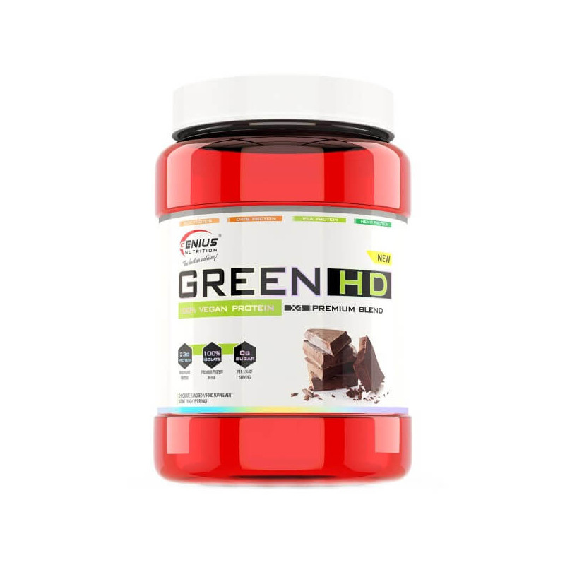 Green-HD от известного бренда из Европы Genius Nutrition – полностью растительный протеиновый продукт, основу которого составляет микс натуральных белков из гороха, риса, овса и конопли, полученных путем ферментации первичного сырья и приведенных в оптимальную быстроусвояемую форму изолята.