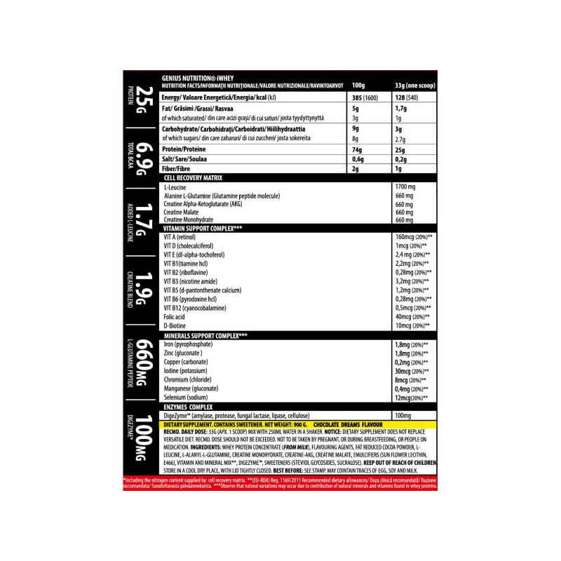 В порции порошка iWhey от Genius Nutrition массой в 33 г содержится: