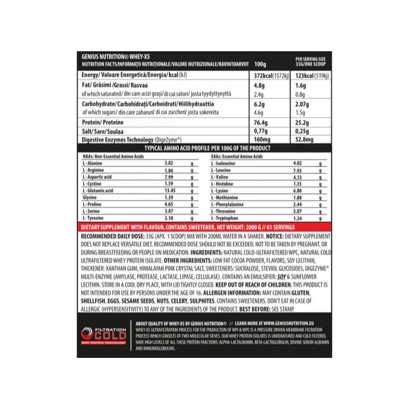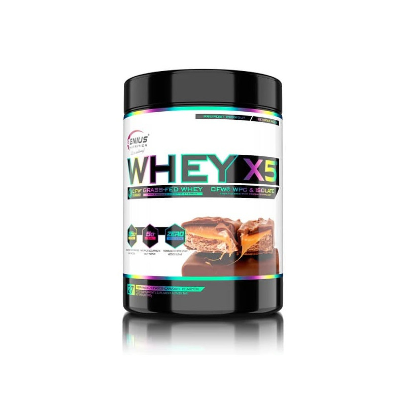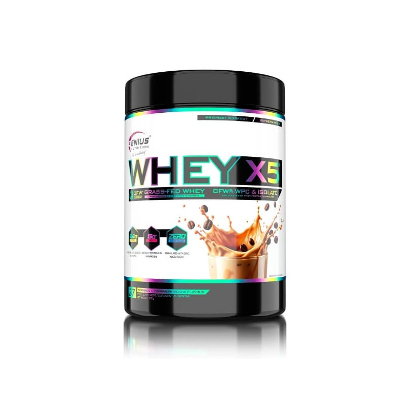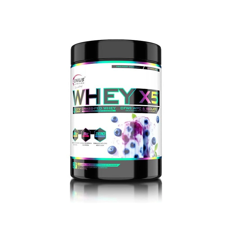 Whey-X5 от известного европейского бренда Genius Nutrition – сбалансированный микс изолята и концентрата высококачественного сывороточного протеина, полученного из цельного коровьего молока щадящим методом холодной ультрафильтрации. Такая обработка позволяет по максимуму сохранить в готовом продукте все полезные вещества – заменимые и незаменимые аминокислоты, витамины, минералы, иммуноглобулины. Дополнительно в состав введены пищеварительные ферменты в виде запатентованной авторской формулы Digezyme.