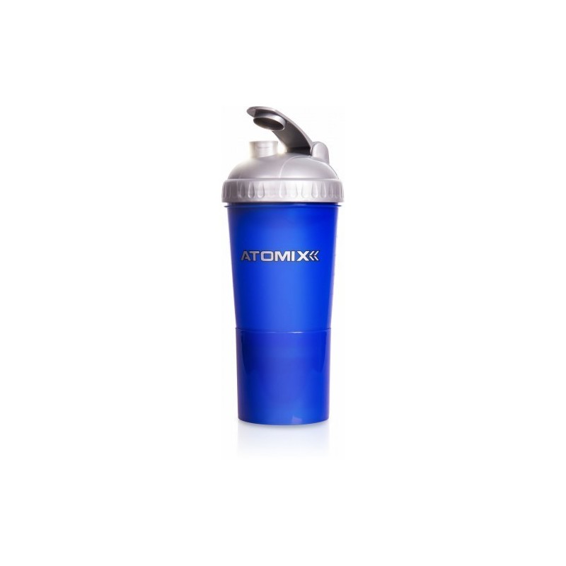 Шейкер AtomiXX служит надежной системой для хранения и транспортировки спортивного питания. Данное изделие имеет основной отдел для жидкостей и отдельно прикручивающуюся нижнюю часть, которую можно использовать как без контейнера, так и с контейнером, идущим в комплекте и имеющим 4 отдела (1 большой и 3 маленьких с обратной стороны). Это действительно качественный и удобный шейкер.