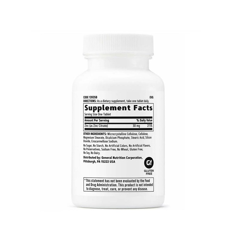 Zinc 30 мг от GNC – это современная добавка ведущего бренда спортивного питания на базе цитрата цинка, которая разработана специально для улучшения функционирования мозга и костной системы, а также укрепления защитных функций организма.
