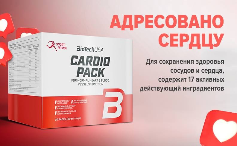 Мы предлагаем пищевые добавки от лучших производителей. Почему же мы рекомендуем Cardio Pack от американской компании BioTech? Потому что в этом комплексе тщательно подобран состав, которому нет равных: