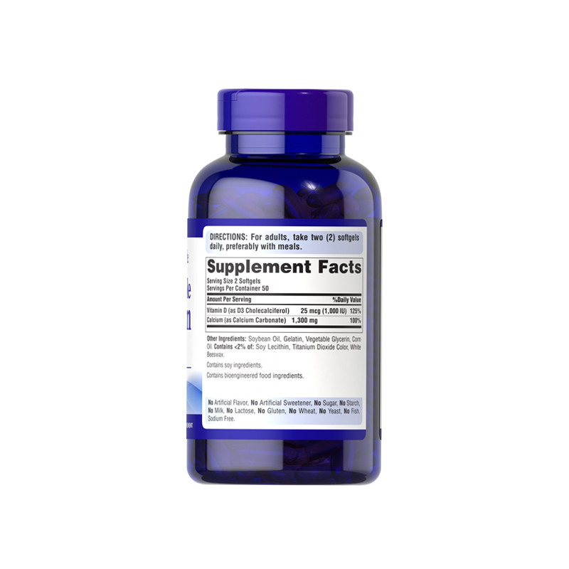 2 капсулы Absorbable Calcium+Vitamin D-3 Puritan's Pride, являющиеся рекомендованной суточной дозой, содержат в составе:
