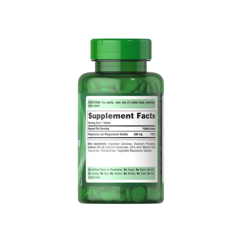 Magnesium 500mg от известного производителя из США Puritan's Pride – чистый, легко усвояемый организмом магний в таблетках.