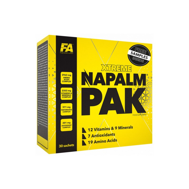 Xtreme Napalm Pak от производителя из Польши Fitness Authority – поддерживающий и оздоровительный комплекс, в состав которого входят целых 55 ингредиентов. Он имеет комфортный для приема формат – пакетики, в которые входят капсулы и таблетки. В каждом пакетике содержится суточная доза препарата.
