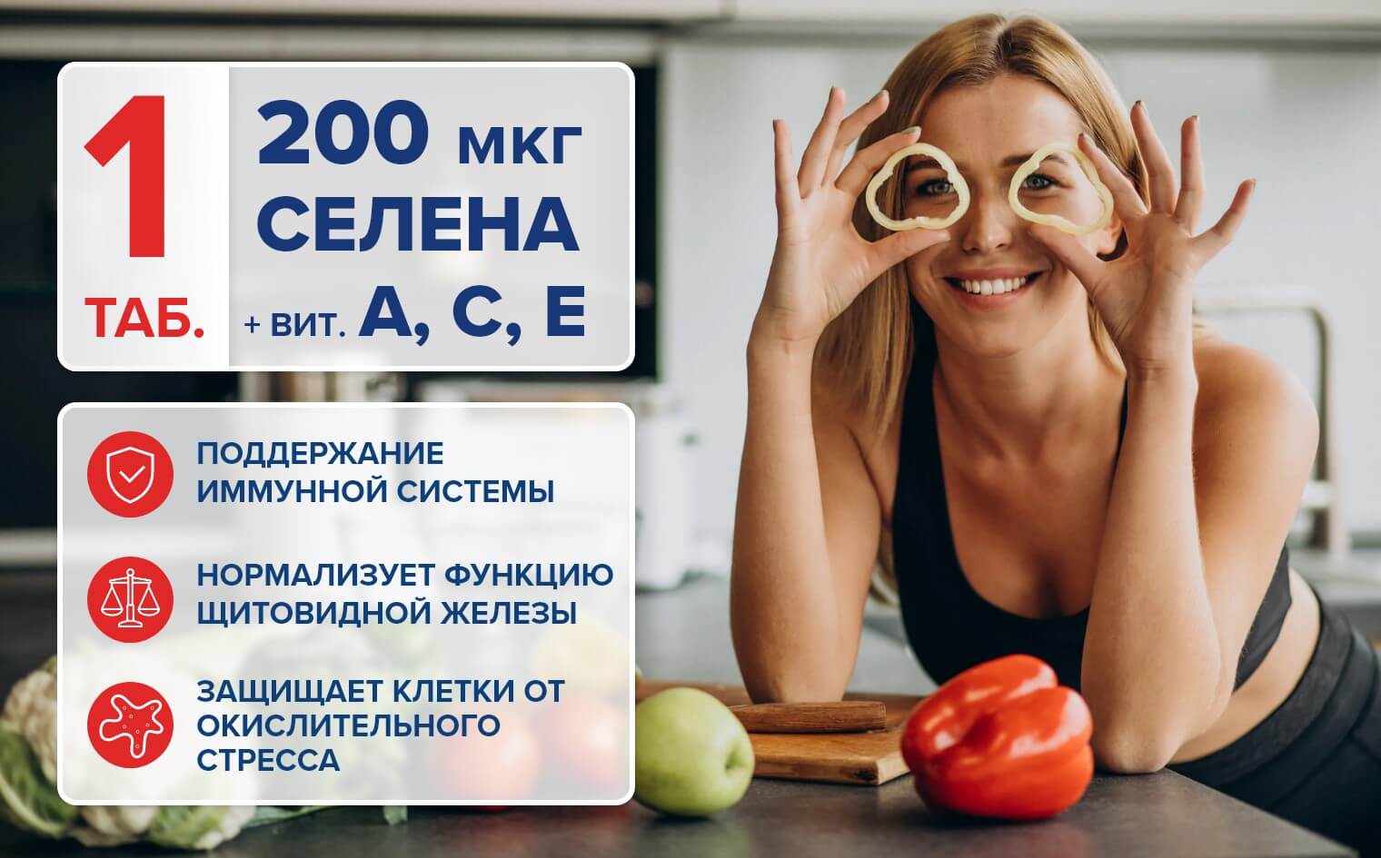 В состав каждой таблетки БАДа Selenium+Vit. ACE от Sporter входит: