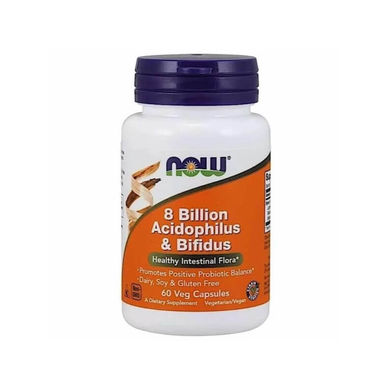 Биодобавка 8 Billion Acidophilus and Bifidus от производителя натуральных БАДов из США Now Foods – это сбалансированный пробиотик-микс из двух видов полезных бактерий: ацидофильных и бифидум.