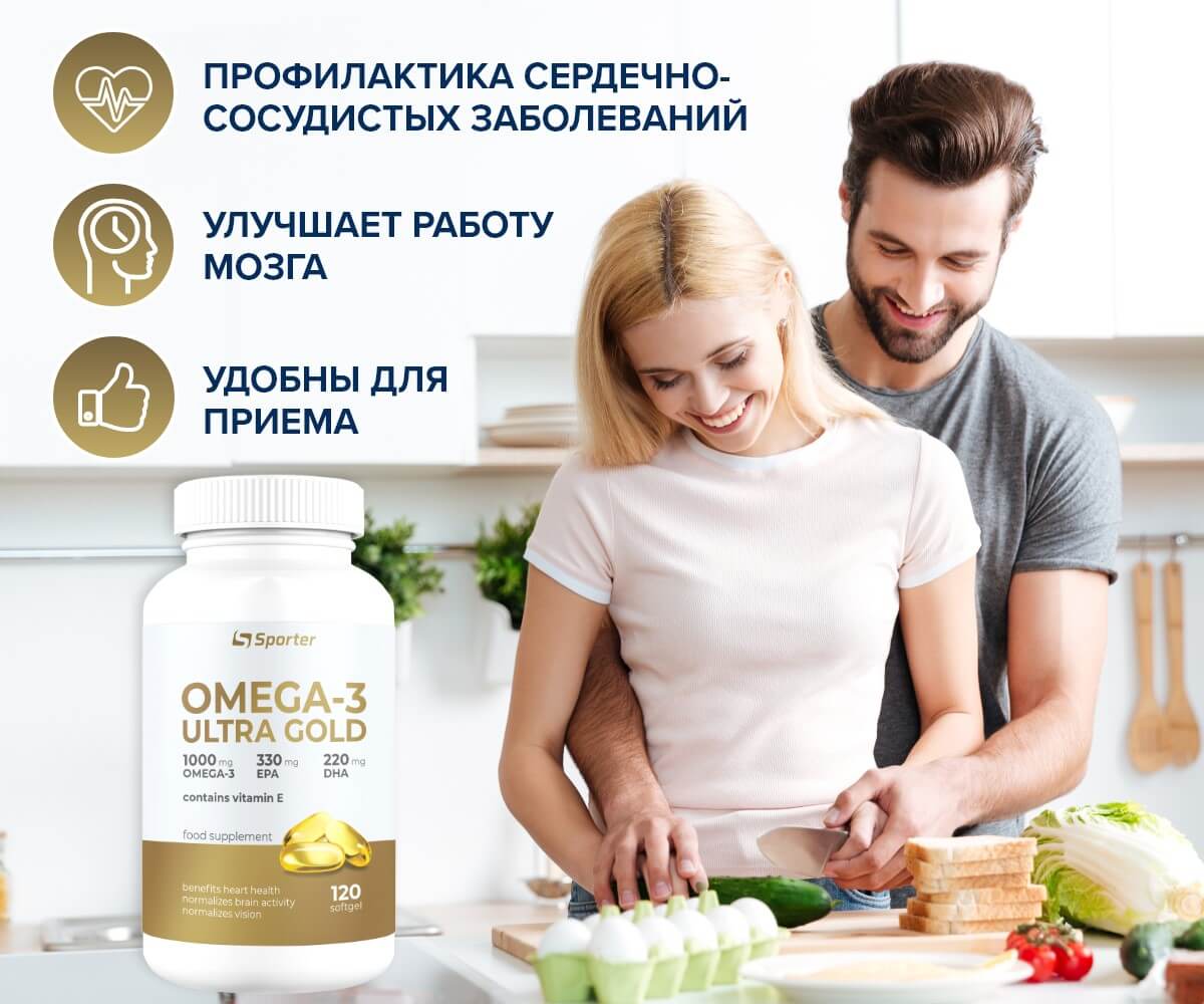 Попадая в организм человека, пищевая добавка Omega-3 Ultra Gold от Sporter: