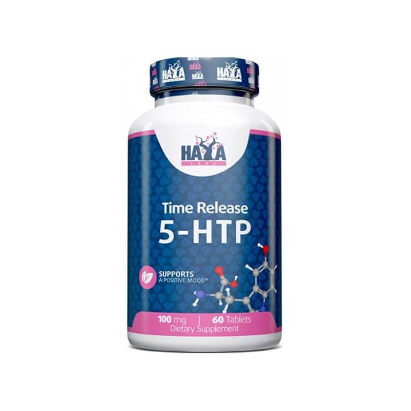5-HTP Time Release биодобавка от популярного американского бренда Haya Labs. Она представляет собой соединение 5-гидрокситриптофан, которое также называют окситриптаном. Вещество является натуральной аминокислотой и извлекается из семян гриффонии простолистной.