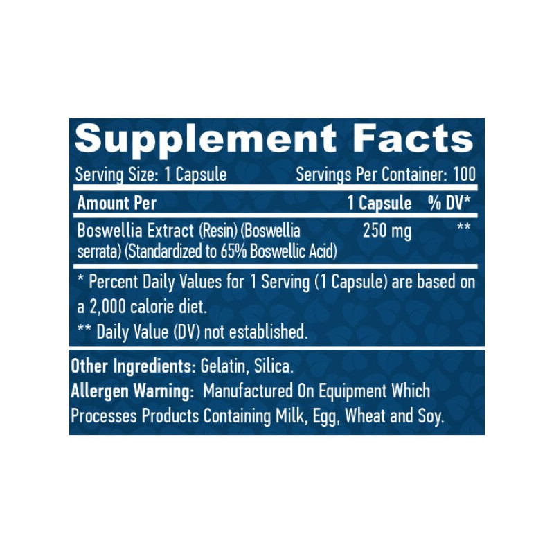 В каждой желатиновой капсуле диетической добавки Boswellia от Haya Labs содержится: