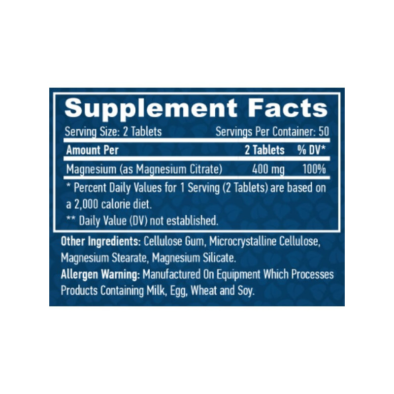 В порции Magnesium Citrate от Haya Labs из 2 таблеток содержится: